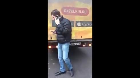 干嘛呢?男子竟用一己之力阻止货车倒车