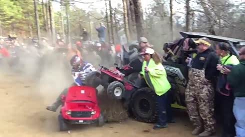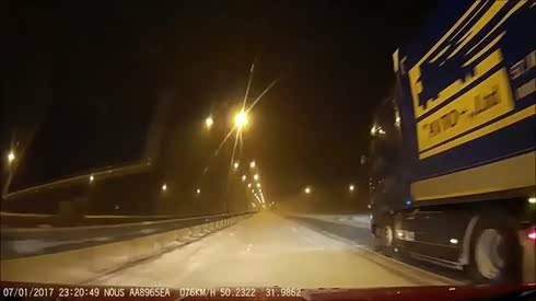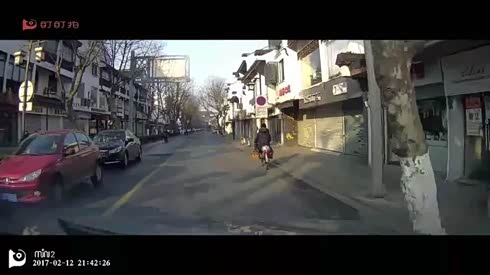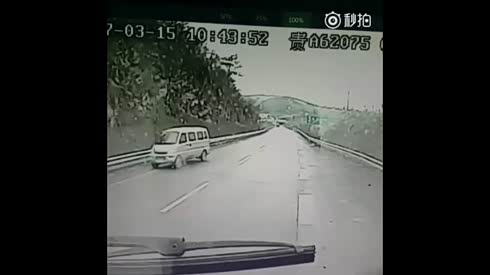 命悬一线 摩托车迎面撞汽车骑手被撞飞