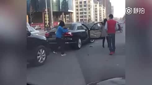 轿车剐蹭后逃跑 女子站车前阻拦失败