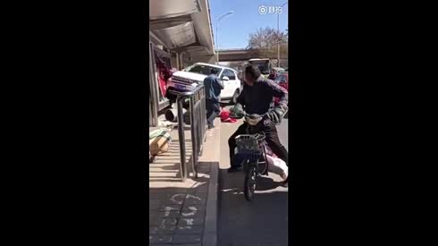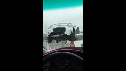 吓坏摄像车主 轿车在栅栏上秀“杂技”