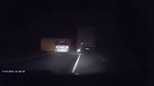 真的惊魂一幕 轿车直接撞上失控大货车