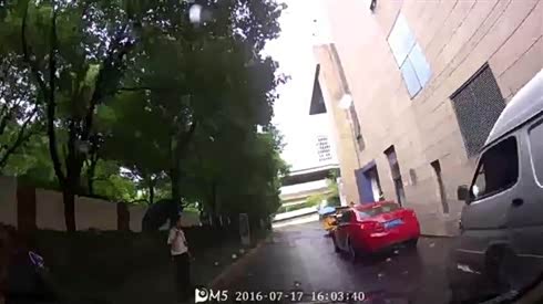 真是太不应该 电动车撞上右转摄像车