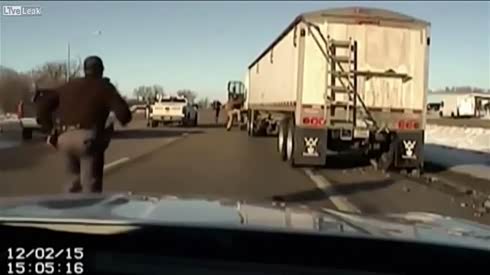 司机失去知觉!警察跳进卡车驾驶室救人