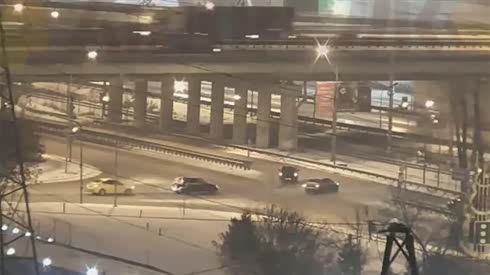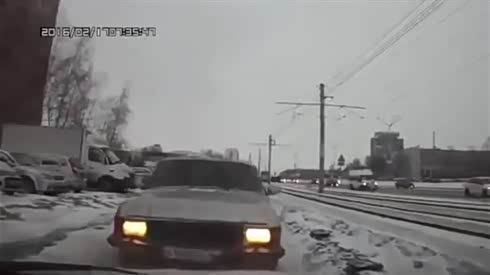 眼睁睁看着 雪地湿滑路面两车迎头撞