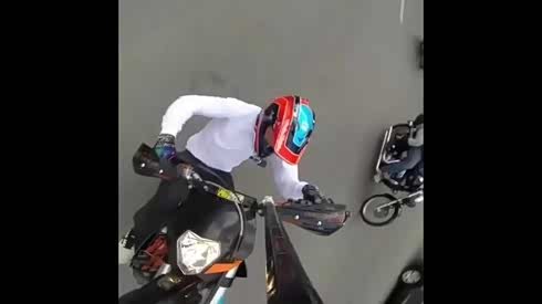 这回卡脸了吧 摩托骑士秀车技惨摔车