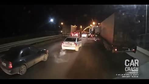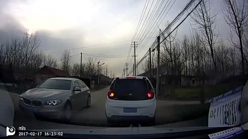 盲区看不见 小轿车在卡车前加塞被怼