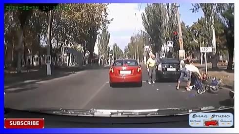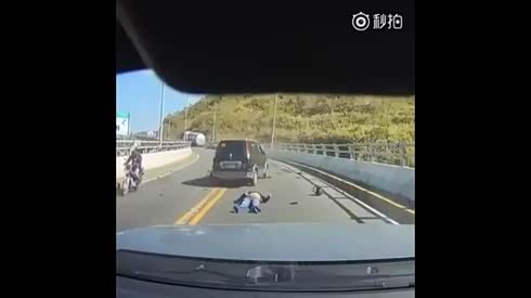 母亲拼命护住孩子 轿车后溜撞倒母子