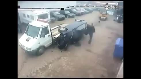 乐极生悲 丰田兰德酷路泽冲沙坡顶翻车