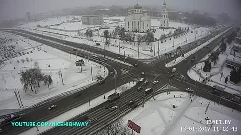 路滑车速更要慢 实拍轿车失控冲上雪堆