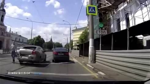 吓坏司机 看失控轿车直奔摄像车而来