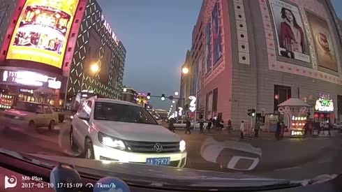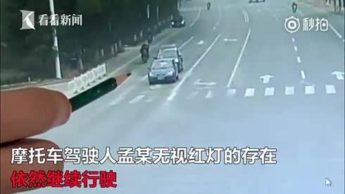 无证骑摩托闯灯遭撞飞 空中翻转720°