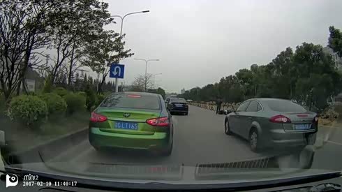 路怒爆发与人赌气 差点撞飞路上清洁工