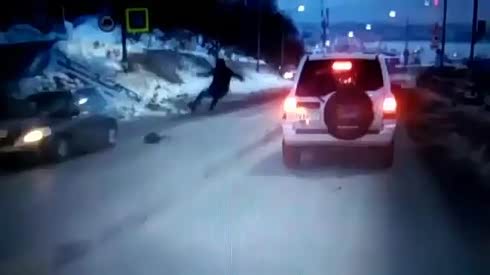 劲儿不小 行人大摇大摆过马路惨被撞飞