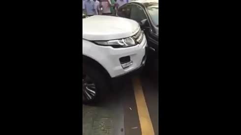 相煎何太急 捷豹挡住停车位被路虎猛撞