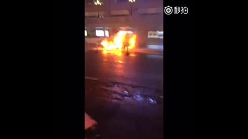 火势不小 实拍贵阳一辆小汽车街头燃烧