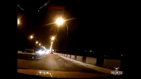冰天雪地 摄像车惊险躲过打滑失控轿车