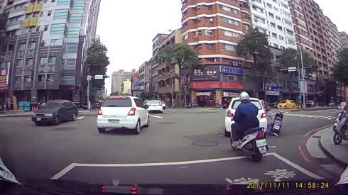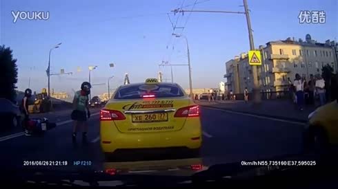 脾气很暴啊 实拍摩托车与出租车剐蹭