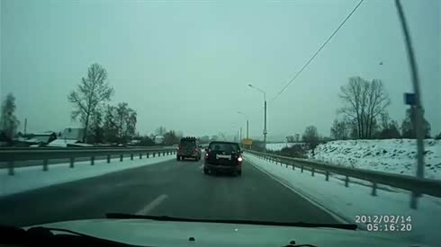 堪称冰上芭蕾 SUV雪地超车失控左摇右摆