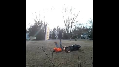 啃了满嘴泥 男子驾驶摩托车玩翘头失败