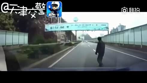 高速上遛弯!监控实拍摄像车撞倒行人
