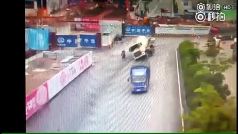 凶多吉少 泥罐车转弯时侧翻压倒骑车人