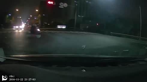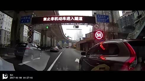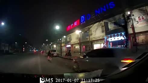 惊险一幕 看摄像车拐弯直接撞飞电摩