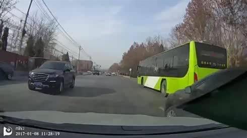 就差一点点 实拍摄像车险撞闯红灯大妈