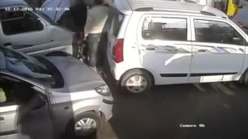 小轿车强行加塞 摄像车不慎撞了上去