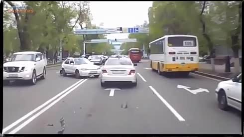 突然变灯前车急刹 摄像车直接撞走前车