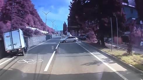 凶手逃之夭夭 货车被失控轿车逼进沟里