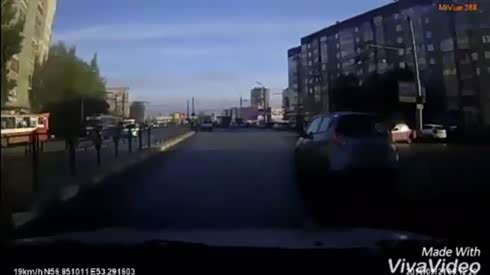 直接穿墙而过 实拍路口惊险碰撞事故