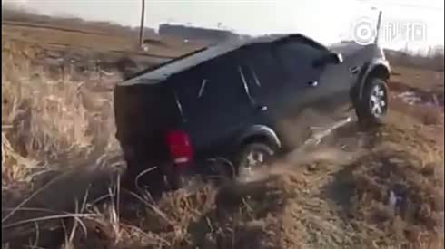 司机太过鲁莽 实拍路虎发现越野时翻车