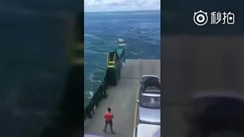 没拉手刹?实拍SUV从渡轮上跌落大海