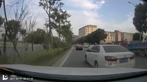 真够倒霉的 围观直行车辆无辜被剐蹭