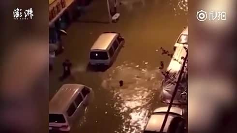 暴雨连天 昆明被淹男子水中唱歌吐槽