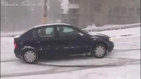 拼命刹车也没戏 记录雪天坡道多车被坑
