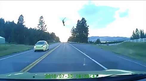 不要眨眼睛 轿车高速撞飞横穿公路的鹿