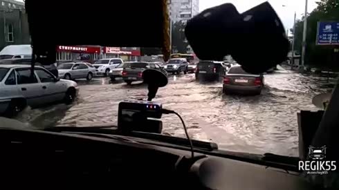 开车就像开船 看国外城市内涝积水严重