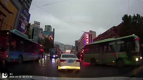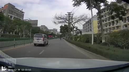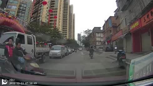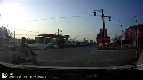 载着小孩还乱窜 电摩横穿马路险被撞飞