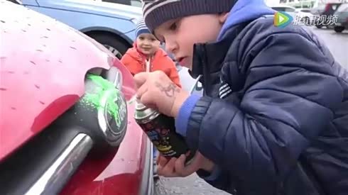 真是哭笑不得 熊孩子将汽车喷漆玩耍