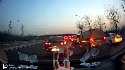 司机竟浑然不觉 前车缓慢溜车被追尾