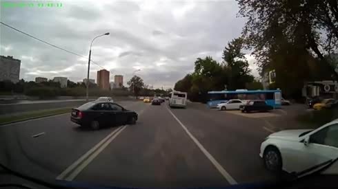 险些撞翻车 看轿车根本不看路直接拐弯