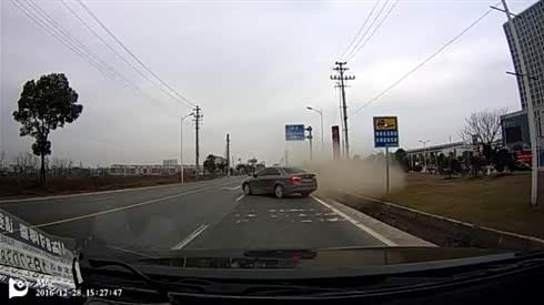 幸好没发生碰撞 SUV被拐弯车挤进灌木丛