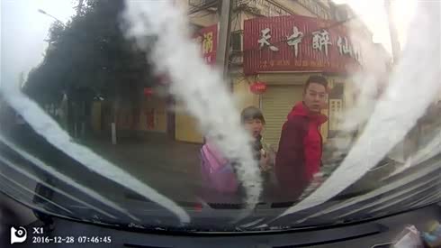 路人吓傻了 轿车冲上行人道压爬俩行人
