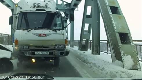 太吓人了 司机睡着撞上卡车恐怖翻滚