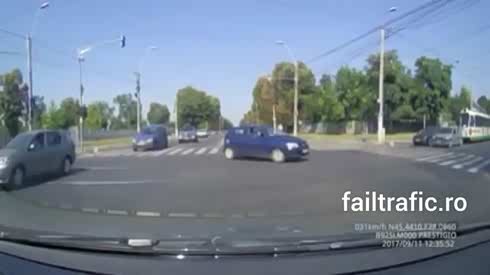 闹哪样!轿车路口中央突然原地掉头被撞