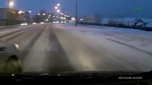 真的是停不住 雪天路滑两车迎面相撞