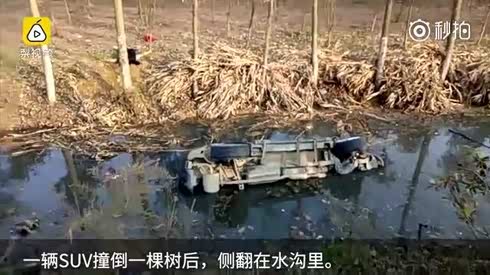 惨不忍睹 越野车撞断树后失控掉进河沟