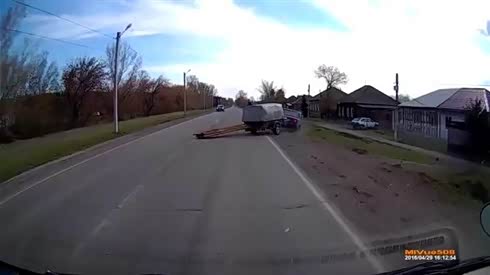 轮胎都开飞了 看轿车行驶途中轮胎掉落