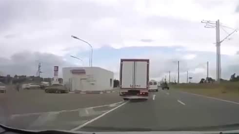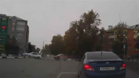 着实吓一跳!实拍司机左转弯拦腰被撞